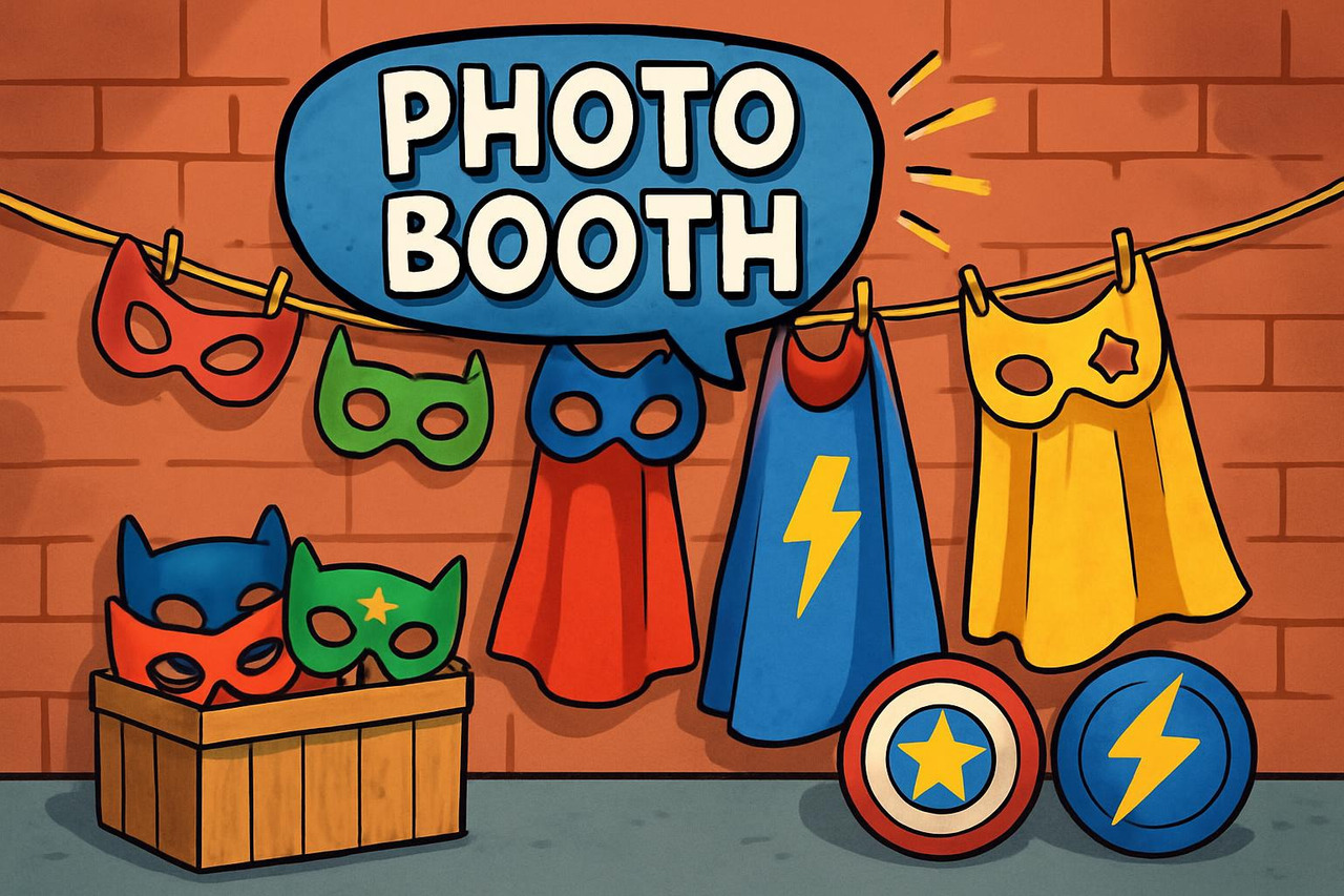 Crie espaços onde os convidados (e principalmente as crianças) possam interagir e tirar fotos divertidas. Um "photo booth" com um fundo temático (como uma parede de tijolos falsos ou a cidade à noite) e acessórios como máscaras, capas, escudos e martelos de brinquedo é sucesso garantido! Outra ideia é montar um pequeno cenário que remeta ao esconderijo de um herói ou a uma cena de ação. Esses cantinhos não só divertem, mas rendem cliques incríveis. E falando em cliques, lembre-se da importância de um bom registro fotográfico para eternizar esses momentos de pura alegria. Uma fotografia infantil de qualidade captura a espontaneidade e a magia que uma decoração bem pensada proporciona.