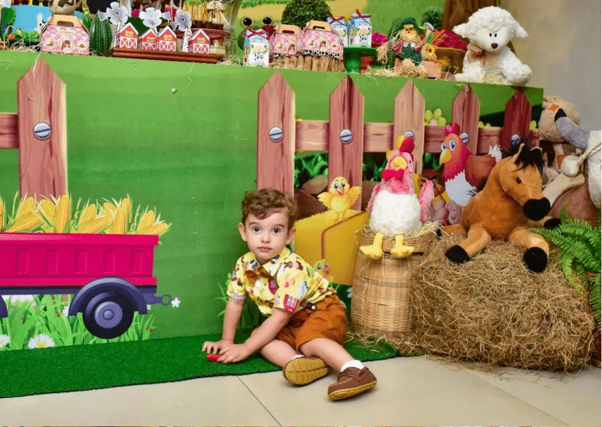Para os pequenos que adoram animais e o ar livre, o tema Fazendinha é uma opção fofa e divertida. A decoração pode ser rústica, com feno, cordas e chapéus de palha. Os bolos podem ser decorados com animais da fazenda em pasta americana. Para as atividades, você pode fazer uma oficina de pintura de animais de cerâmica, pula-pula inflável em formato de vaca ou até mesmo uma caça ao tesouro na fazendinha.